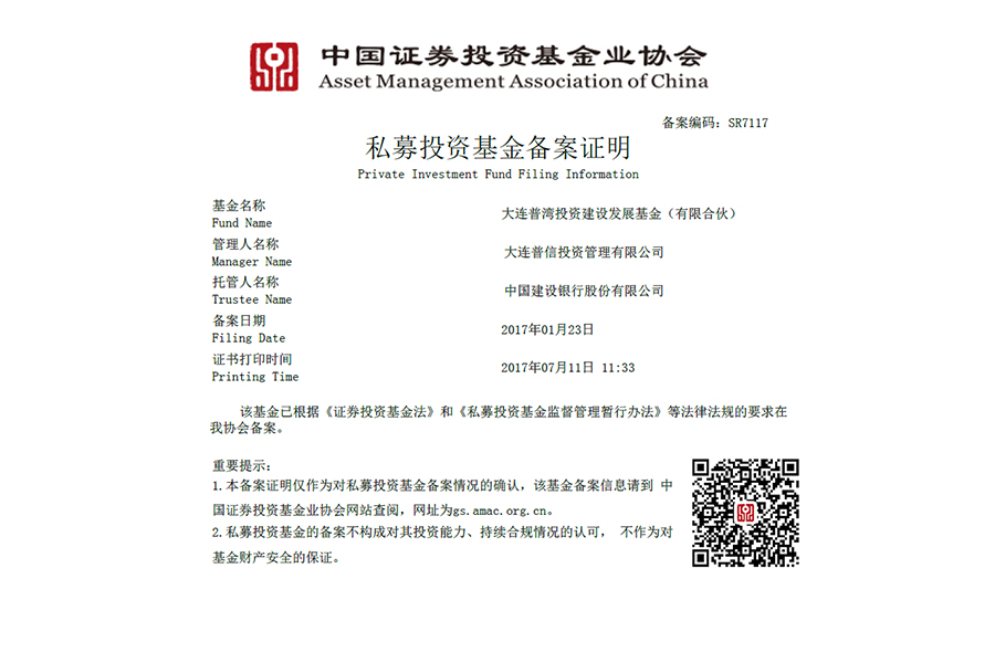 全資子公司-大連普灣投資建設發(fā)展基金(有限合伙)